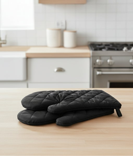 Heat-resistant 230 GSM cotton twill oven mitten, quilted for safety and comfort in the kitchen.